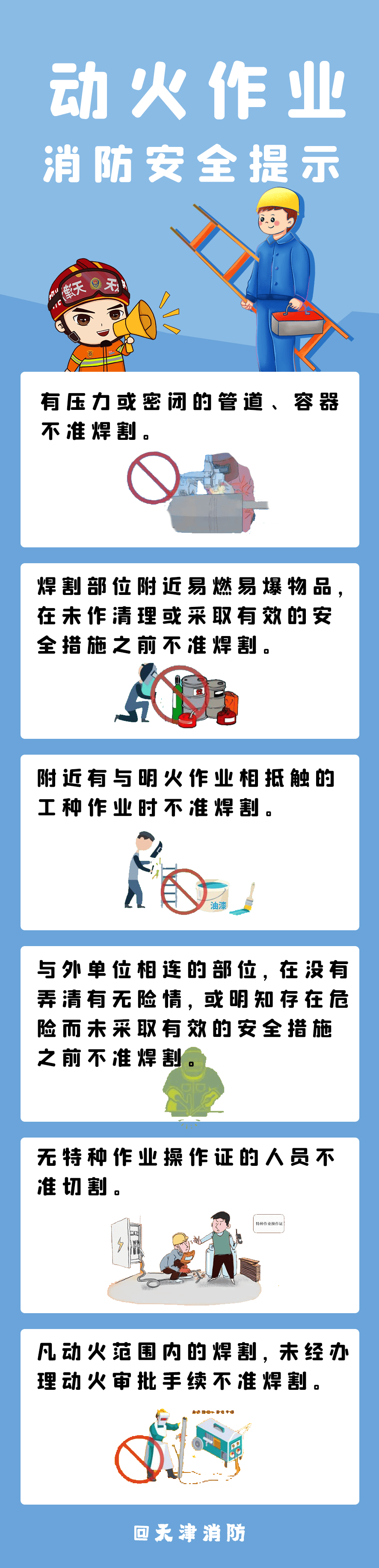 动火作业有风险:先审批、持证上岗,清理油棉杂物,灭火器放身边,专人全程监护,火花不落地,完工复查无隐患。规程记心间,平安回家是真!